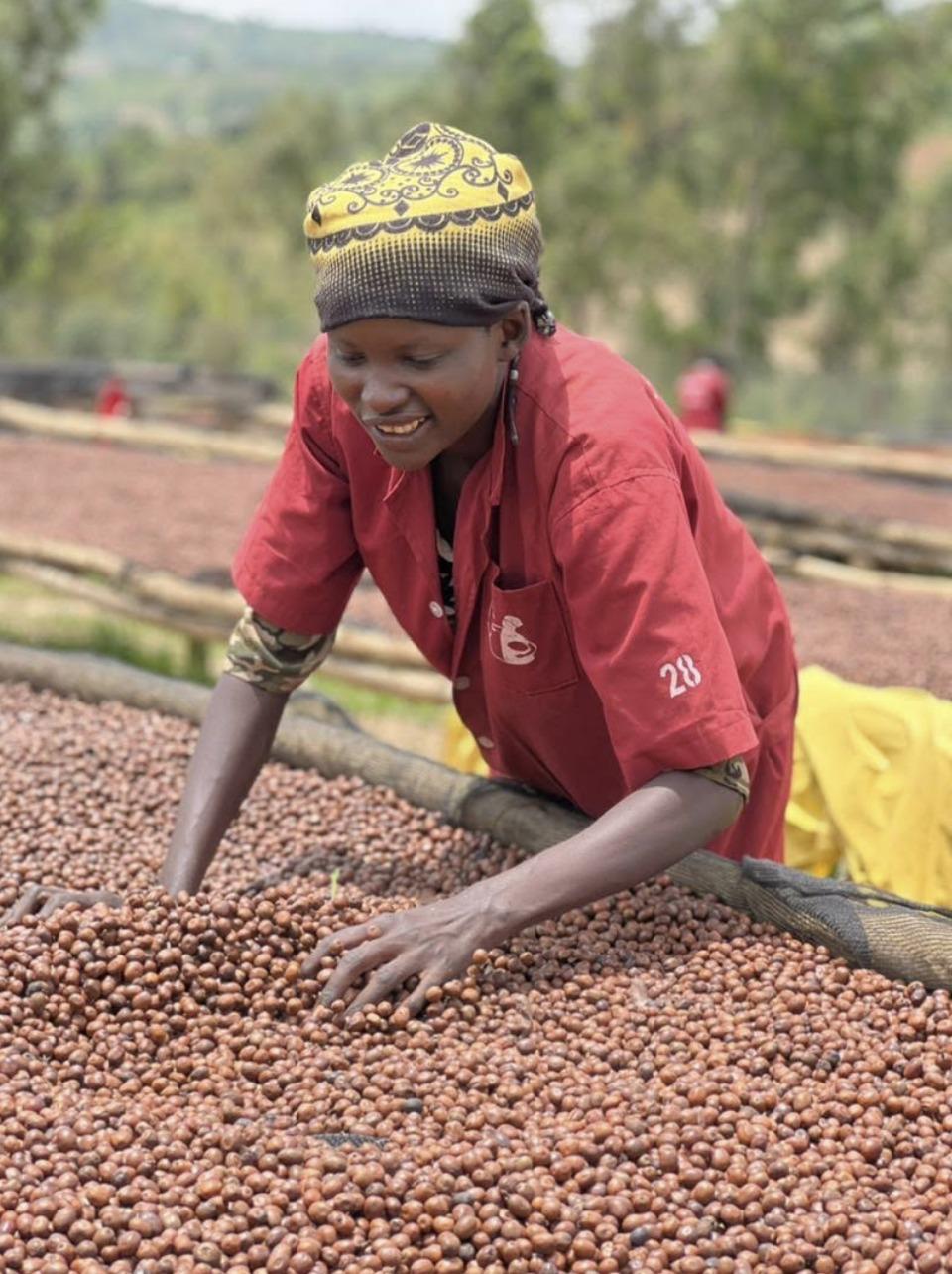 Mukabatsinda Sarah leads a hardworking group of coffee farmers in Mbuye Sector, Ruhango District, in Rwanda’s Southern Province. Together, they cultivate 100% Red Bourbon Arabica coffee, grown in one of the best regions on Rwanda’s central plateau. The farms sit at high altitudes of 1,650 to 1,850 meters above sea level, where the rich clay and sandy soils create ideal conditions for growing high-quality coffee.