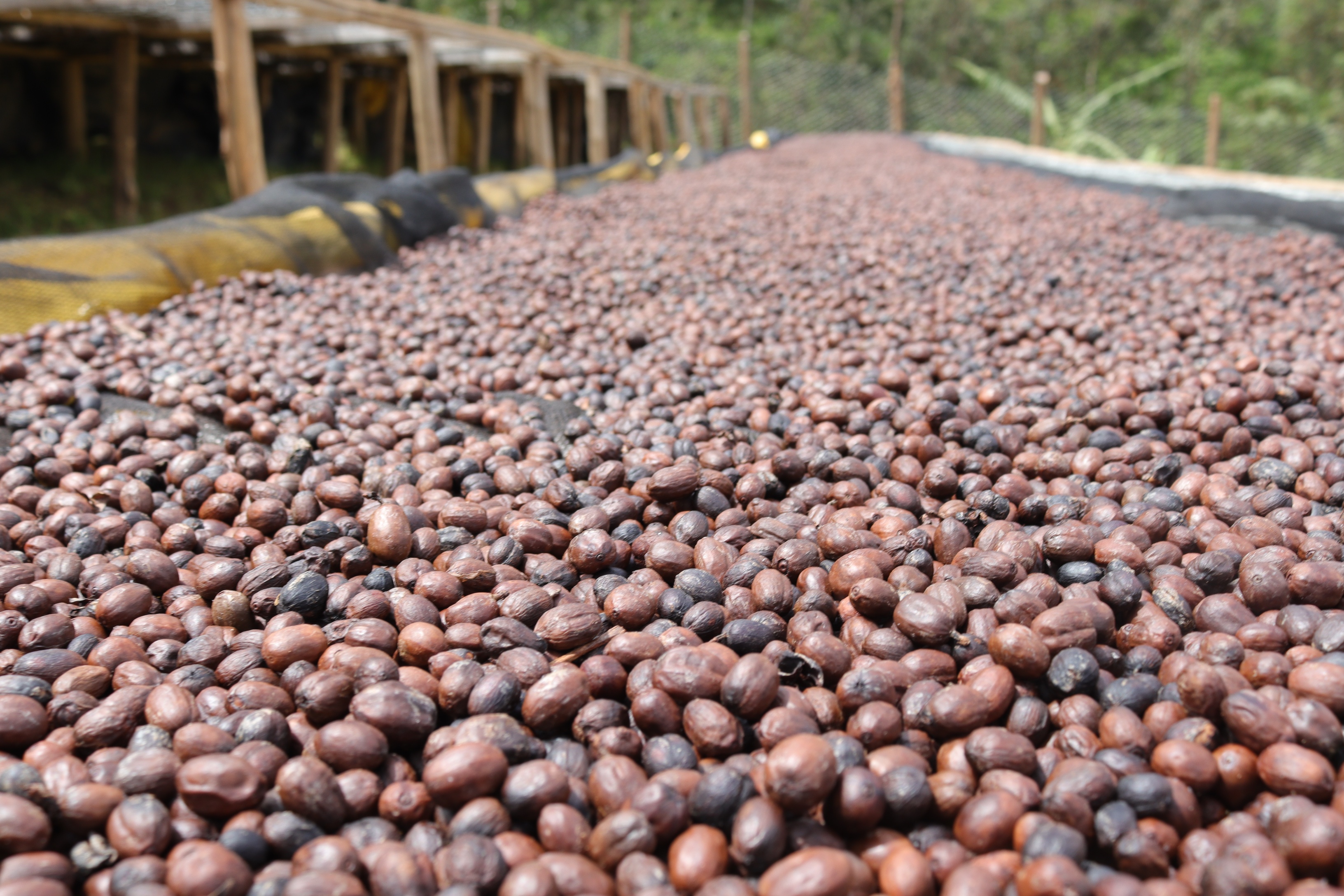 In this anaerobic natural processing, the well sorted and floated coffee cherries are fermented between 24–48 hours, but it can extend up to 72 hours depending on the weather conditions. After fermentation, after that they are dried on raised bed on sun. To avoid mold taste and other unwanted fermentation, the cherries are turned regularly every 30-40 minutes.